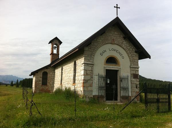 Il secondo brano è tratto da un sorprendente racconto scritto in forma di lettera al pittore Jacopo da Ponte (1510-1592), che lo scrittore definisce compaesano e “fratello maggiore”; Rigoni Stern ne ricostruisce la vita e le relazioni con la terra d’origine della sua famiglia, l’Altopiano, intrecciando la sensibile descrizione dei suoi dipinti coi luoghi in cui essi furono concepiti o realizzati. Nell’episodio citato Da Ponte col figlio Francesco va da Enego (dove il pittore aveva lavorato alla pala del Duomo di Santa Giustina, nel 1555 o 1556) ad Asiago, passando per Marcesina. La chiesetta di San Lorenzo (dedicata al santo protettore dei pastori altopianesi dalle incursioni dei valsuganotti) è stata ricostruita dopo la Grande Guerra, e si trova a poche centinaia di metri dall’Albergo Marcesina, lungo il Sentiero dei Cippi.