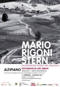Il primo febbraio 2017 nell’Orto Botanico di Padova si è inaugurata la mostra del fotografo francese Loïc Seron “Mario Rigoni Stern. Escursioni nell’opera e nel paesaggio”, che rimarrà aperta fino al 20 marzo con gli orari e il biglietto dell’Orto, sito www.ortobotanicopd.it
