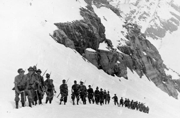Promosso caporalmaggiore, nel febbraio del 1940 viene assegnato al 6. reggimento Alpini quale istruttore di alpinismo e di sci. “Nello zaino – annota nella sua autobiografia – tenevo due libriccini: la Commedia di Dante e Il fiore perduto della lirica italiana dal Trecento all’Ottocento (perduti poi, causa belli, tra le steppe verso Stalingrado nell’estate del 1942)”.