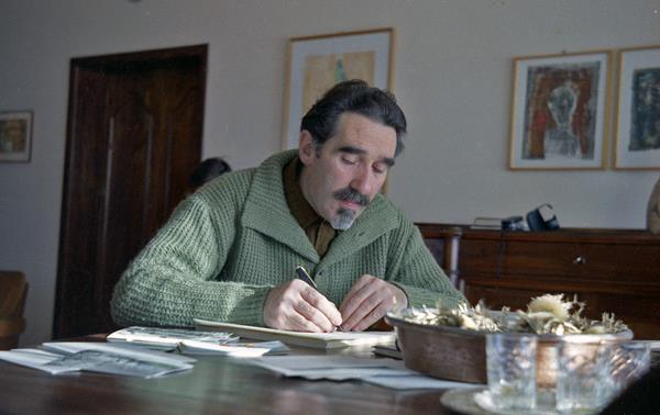 Al suo rientro in paese si occupa della Biblioteca dei combattenti, e alla fine del ’45 viene assunto come “diurnista di terza categoria” al Catasto. È il periodo in cui approfondisce le sue letture di autori stranieri sconosciuti durante il fascismo, da Hemingway, a Kafka, a Lorca, a Eliot, dalla letteratura francese e russa alla storia naturale.